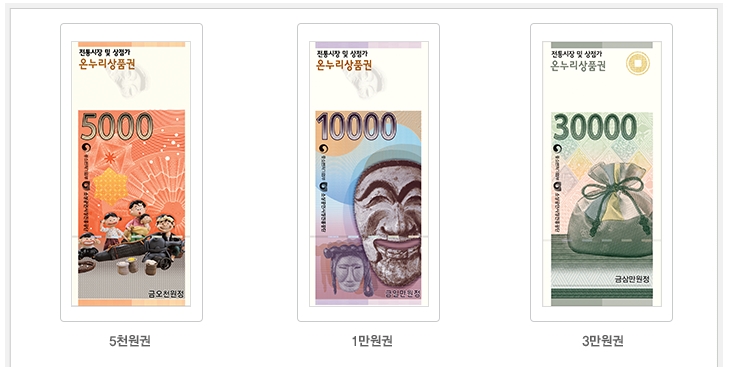 5천원권, 1만원권, 3만원권으로 구성된 지폐형 상품권
