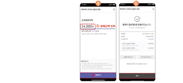 참여 금융기관 또는 간편결제사 앱(APP)에서 온누리 모바일상품권 구입 및 가맹점의 QR을 촬영한 후 금액을 입력·전송하여 결제