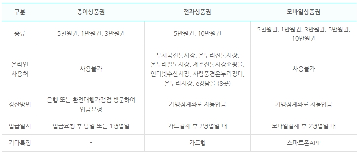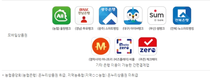 -전자상품권 판매처 : 우리은행, 대구은행, 부산은행, 경남은행, 기업은행, 농협은행, 비씨카드