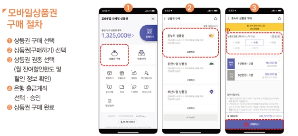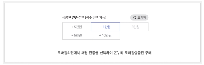 5천원권, 1만원권, 3만원권, 5만원권, 10만원권으로 구성된 모바일기반 상품권