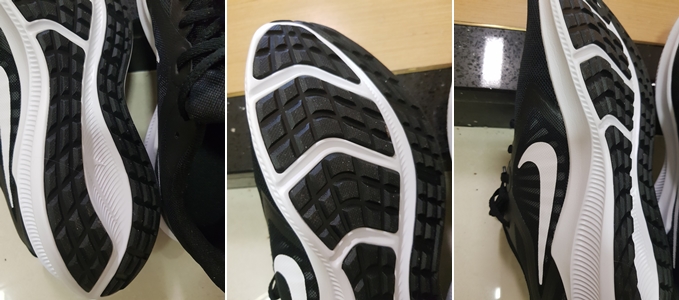 나이키 다운쉬프터10 바닥 구조를 보면 아시겠지만 미끄러움 전혀 없고 신었을 때 착착 감기며 걸을 때 받쳐주는 힘이
