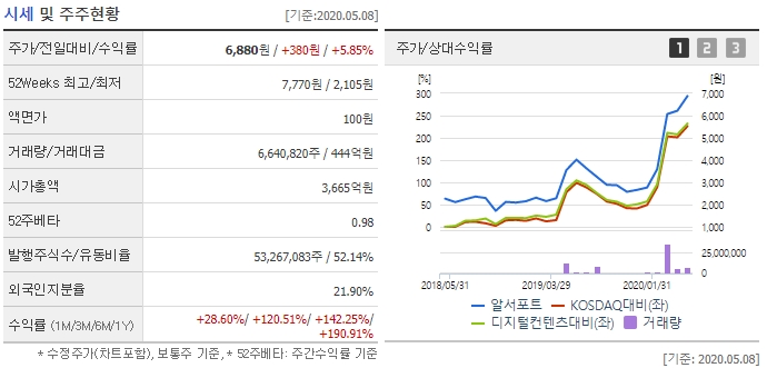 2020년 5월8일 기준임 (실시간 주가는 아래 링크추가함)