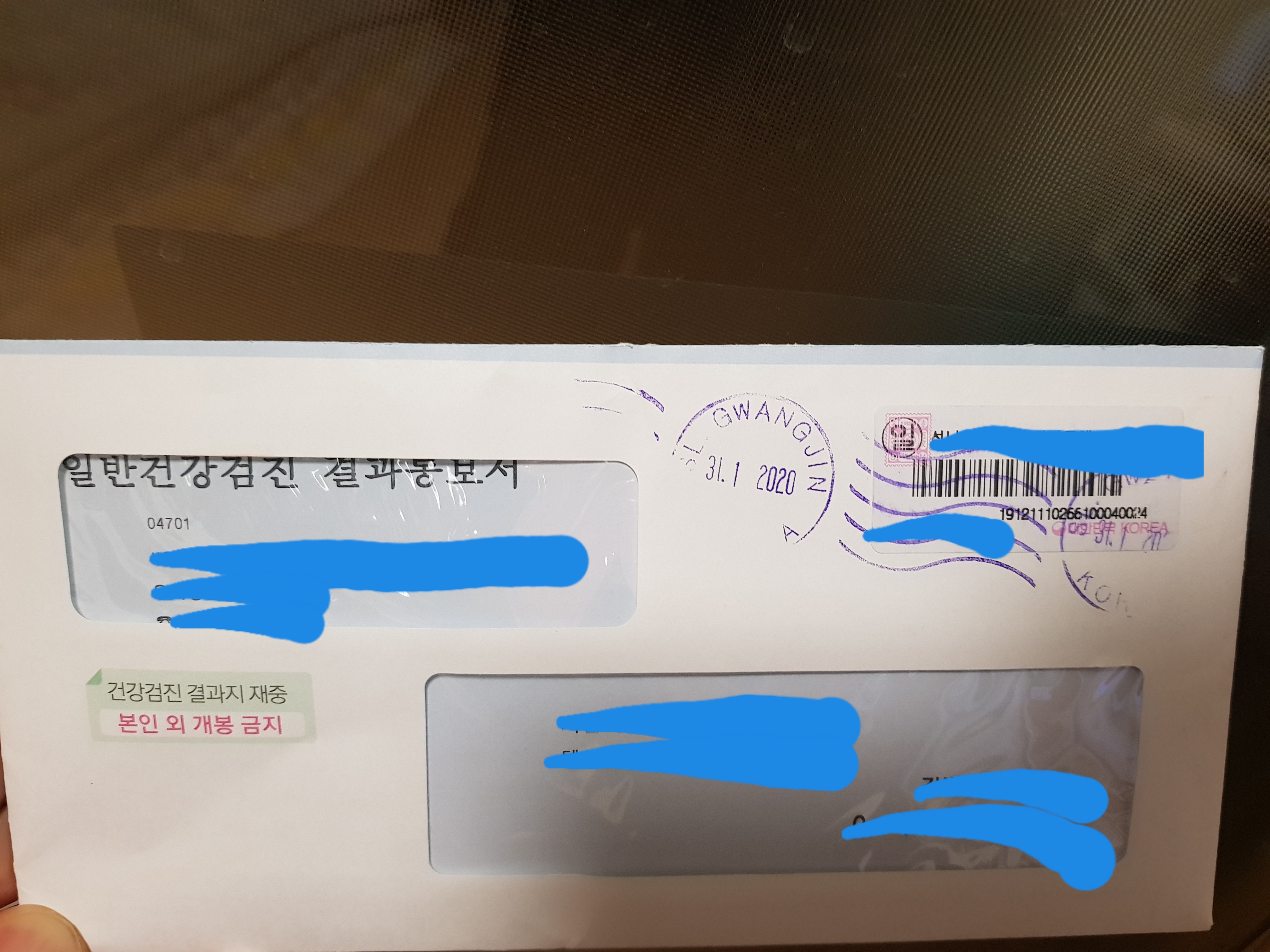 퇴근하고 우편함을 열어보니 우편물이 하나 와있었다. 몇 주전에 검사한 건강검진 결과서였다.