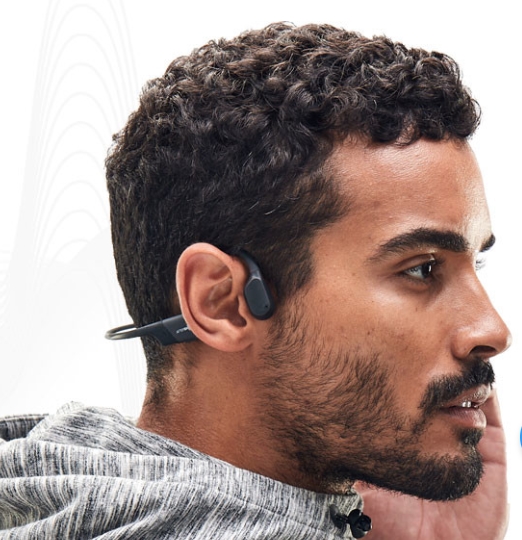 고막을 통해 소리를 듣는 공기전도 방식과 달리, 골전도 방식은 말 그대로 뼈의 진동을 통해 고막을 거치지 않고 달팽이관으로 직접 소리를 전달합니다. 귀를 막지 않는 애프터샥의 이러한 방식은 노래를 들으면서 주변소리를 동시에 들을 수 있어서 안전사고를 줄일 수 있고 고막을 거치는 일반 이어폰은 볼륨을 크게 들을 때 청력손실을 유발할 수도 있는데 이런 문제를 거의 유발하지 않는 게 장점인 거 같아요.
