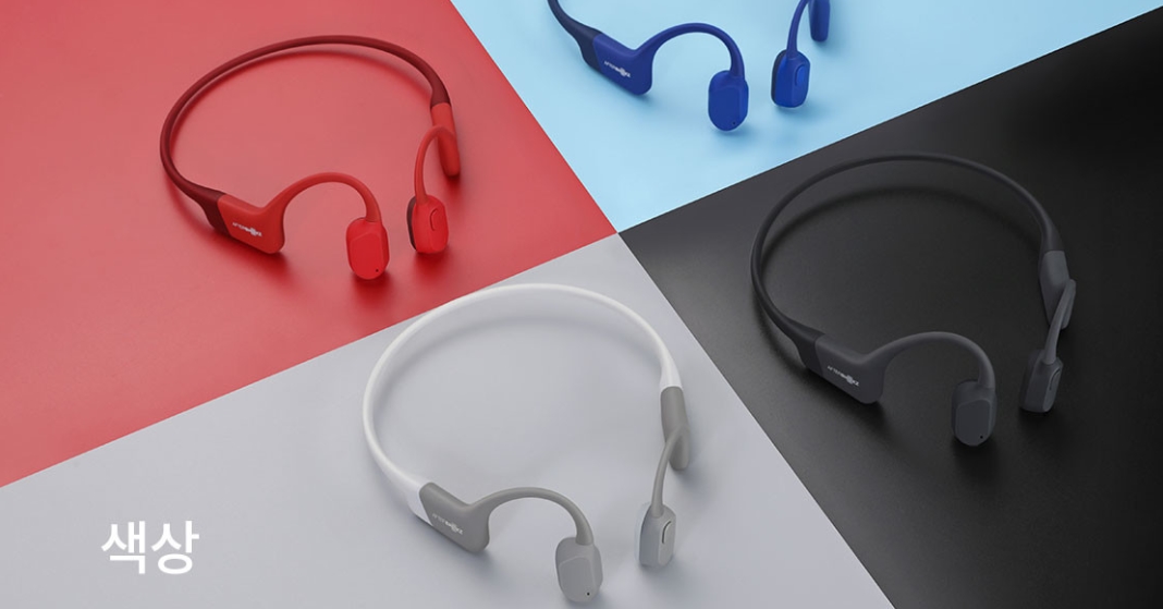 애프터샥은 골전도 블루투스 이어폰으로 유명한 브랜드예요. 우리가 이어폰으로 보통 사용하는 것은 귀 고막을 통한 방식이라면 이 제품은 말 그대로 골(뼈)을 통해 소리를 전달하는 방식입니다.