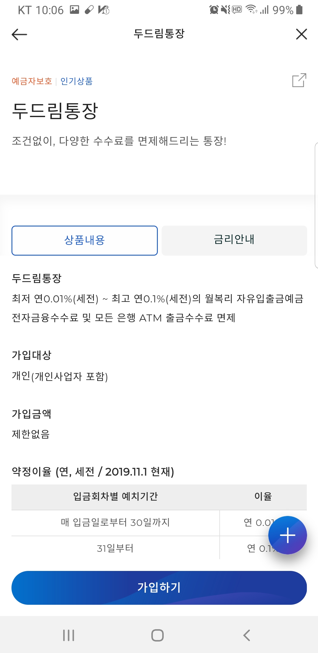 외화통장을 만들기 전에 우선 자유입출금 계좌(두드림통장)를 개설해야 해요.
