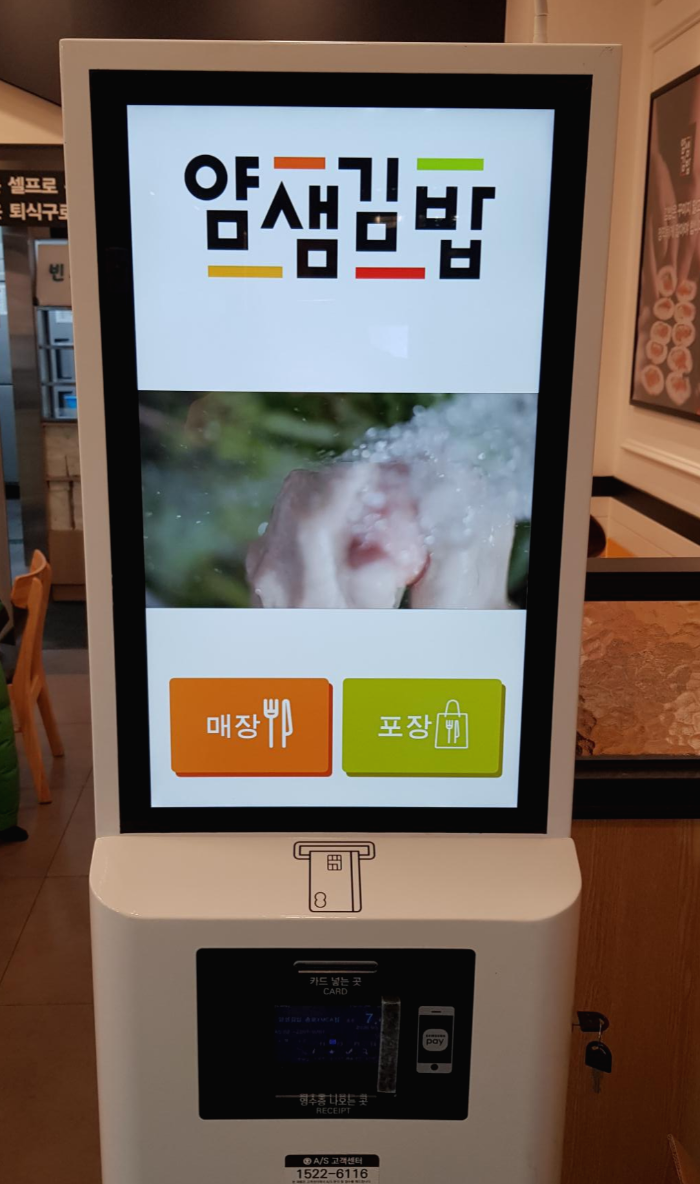 얌샘김밥의 주문방식은 키오스에서 하는 것, 그리고 아마 카운터에서도 가능한 것도 같아요. 저는 갈 때마다 키오스크에서만 해서...