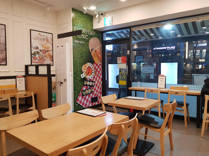 얌샘김밥 종로 YMCA점 내부 모습인데요. 2인용, 4인용 테이블도 있고 혼자 창밖 보면 혼밥도 가능하고요.