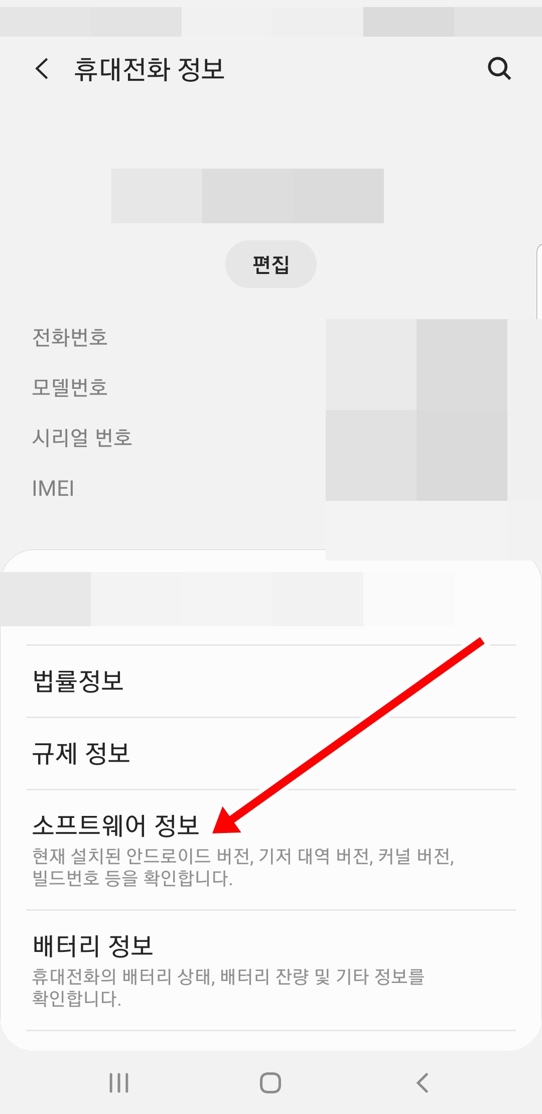 그러고 나서 아래쪽 부분에 휴대전화 정보가 보이실 거예요. 여기를 터치합니다.