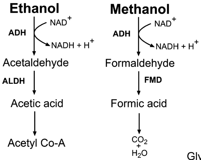 메탄올을 마시게 되면 기본적으로 뇌에 존재하는 GABA수용체를 건드는거라 효과는 있을지 모르겠지만 간에서 일어나는 체내 분해과정에서 포름알데히드를 거쳐 독성이 있는 포름산이 만들어지는데요. 포름알데히드는 방부제로 단백질 조직을 변성시켜 굳혀버리고 포름산은 미토콘드리아의 에너지 대사를 막아버립니다. 따라서 섭취하면 심각한 장기 손상의 위험이 있습니다.